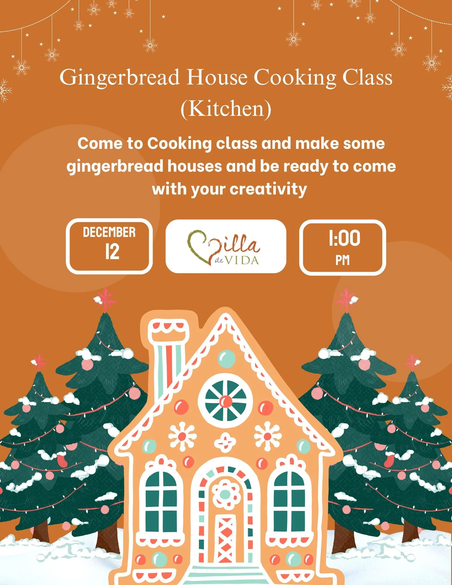 Back to All Events Cooking Class: Gingerbread House Friday, December 12, 2025 1:00 PM 2:00 PM Villa de Vida, Inc. 12939 Pomerado Road Poway, CA, 92064 United States (map) Google Calendar ICS