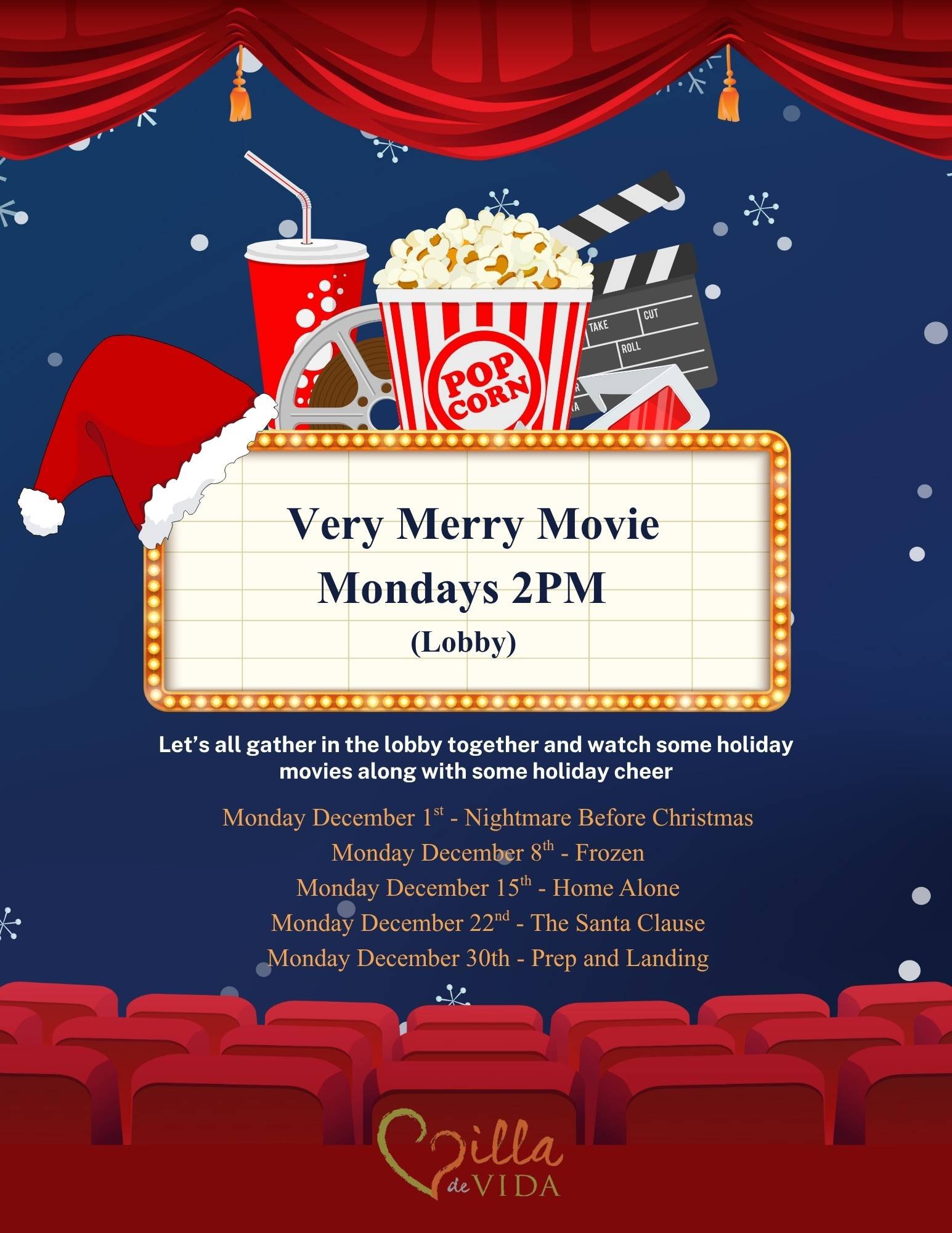 Back to All Events Merry Movie Mondays Monday, December 15, 2025 2:00 PM 3:30 PM Villa de Vida, Inc. 12341 Oak Knoll Road Poway, CA 92064 USA (map) Google Calendar ICS