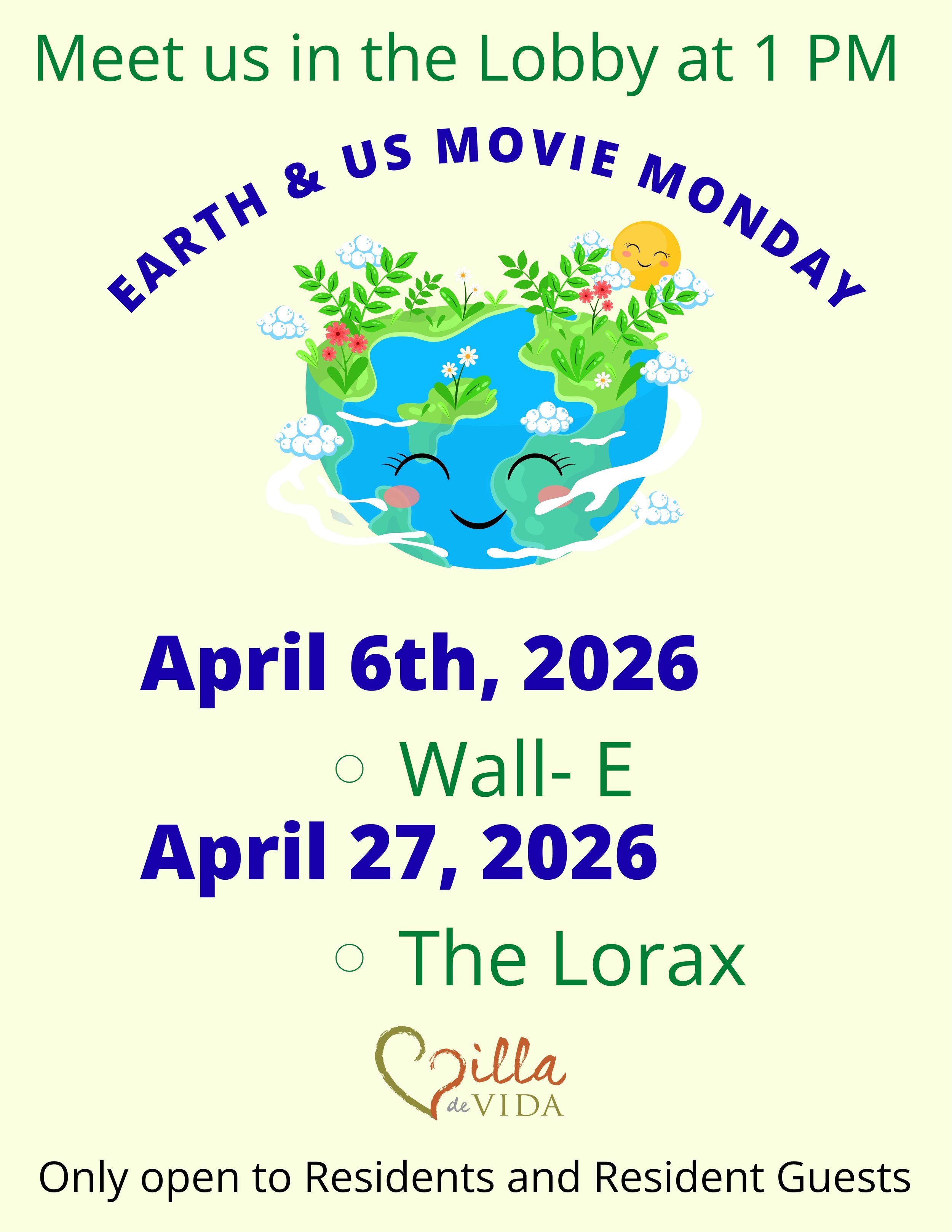 Earth & Us Movie Monday Monday, April 27, 2026 1:00 PM 2:00 PM Villa de Vida, Inc. 12341 Oak Knoll Road Poway, CA, 92064 United States (map) Google Calendar ICS