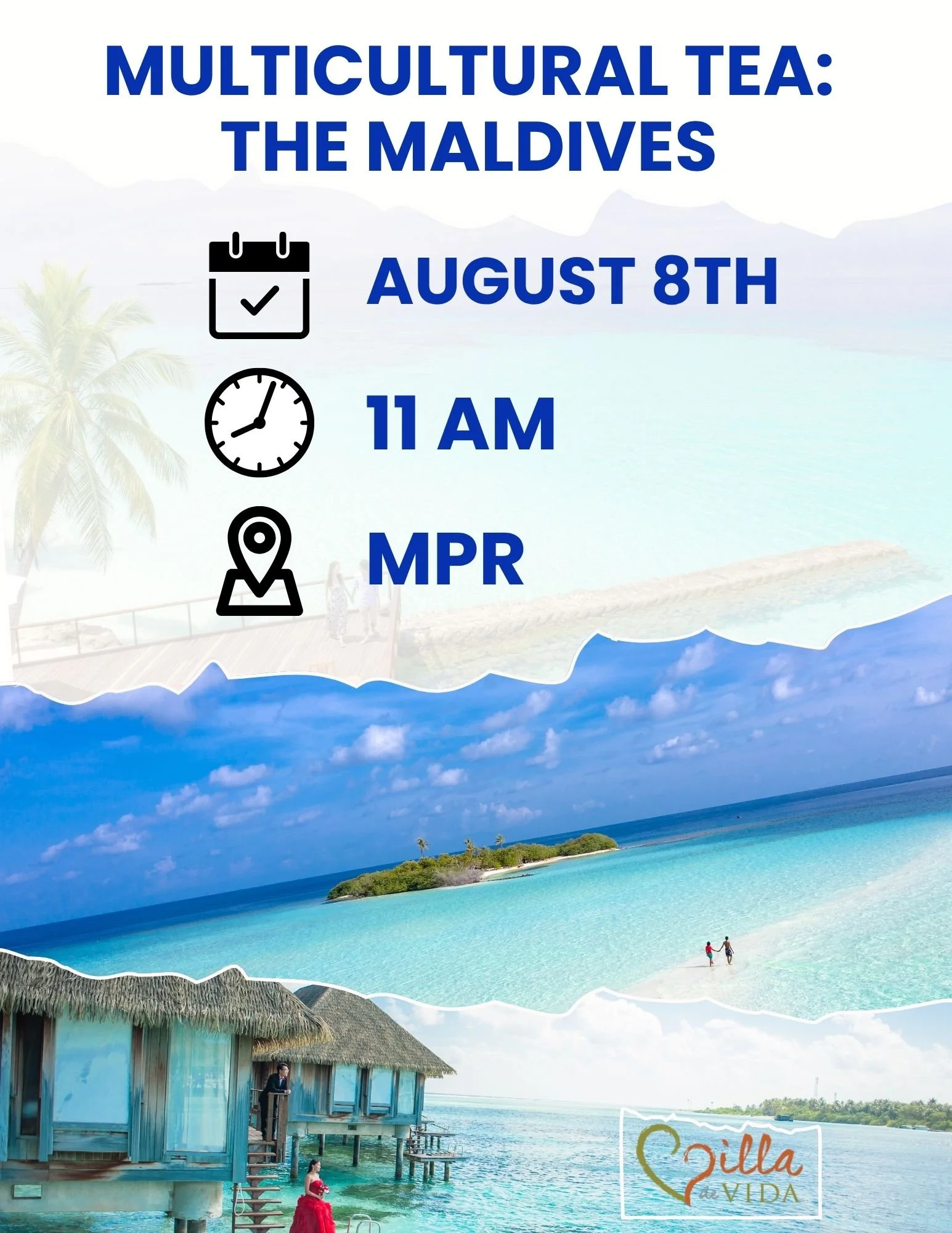 Multi Cultural Tea August Maldives Friday, August 8, 2025 11:00 AM 12:00 PM Villa de Vida, Inc. 12341 Oak Knoll Road Poway, CA 92064 USA (map) Google Calendar ICS