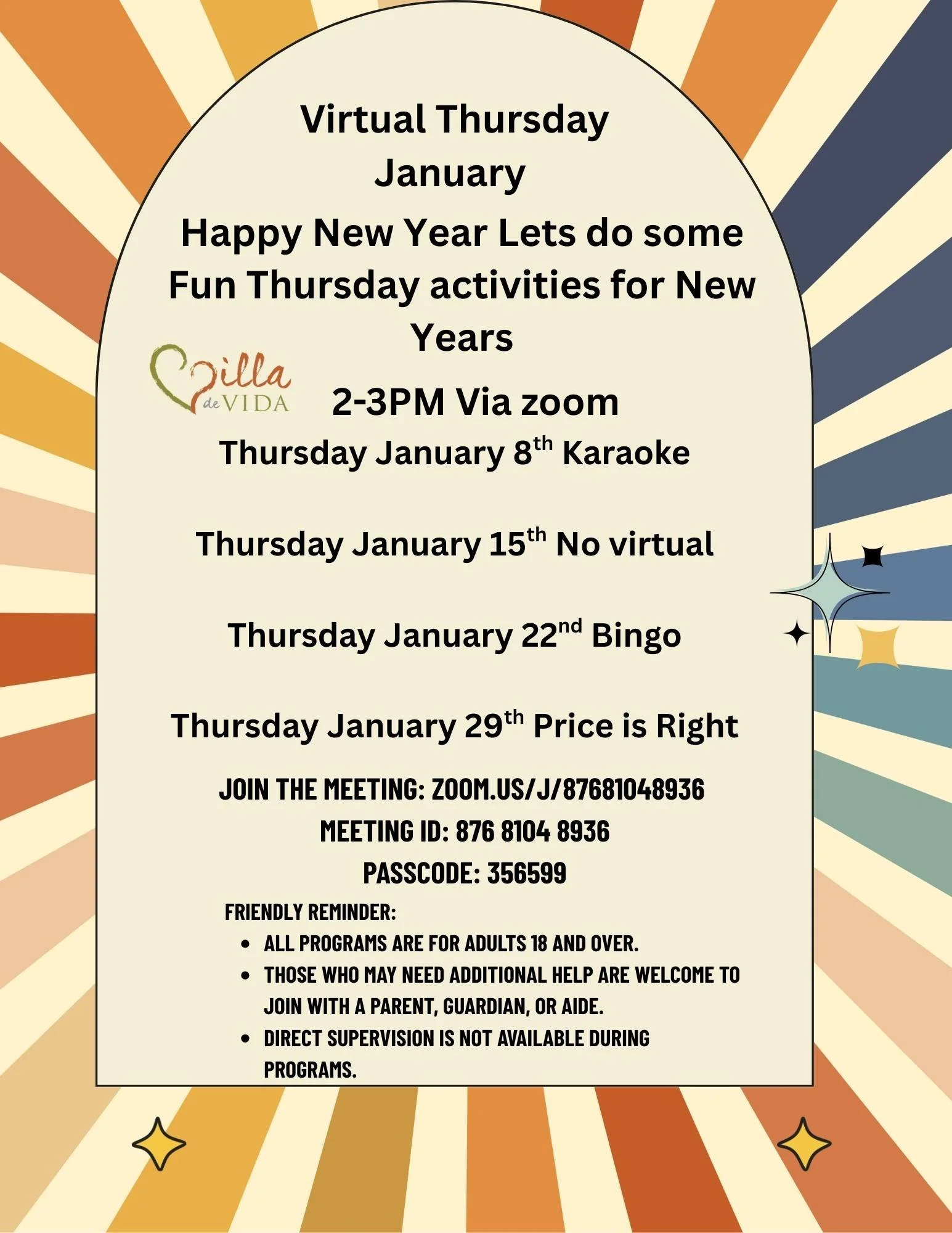Virtual Thursday Thursday, January 29, 2026 2:00 PM 3:00 PM Villa de Vida, Poway 12341 Oak Knoll Road Poway, CA, 92064 United States (map) Google Calendar ICS